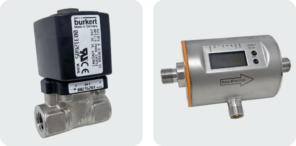 The IFM Flow Meter (right) continuously monitors:
