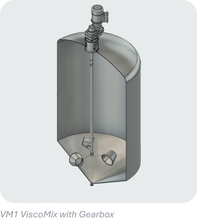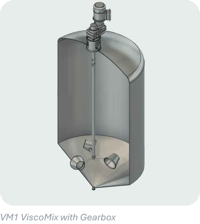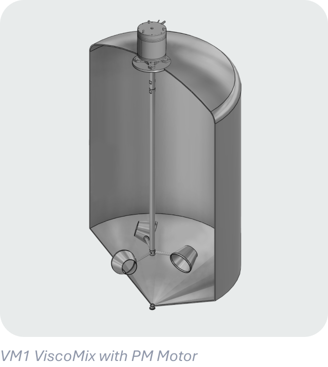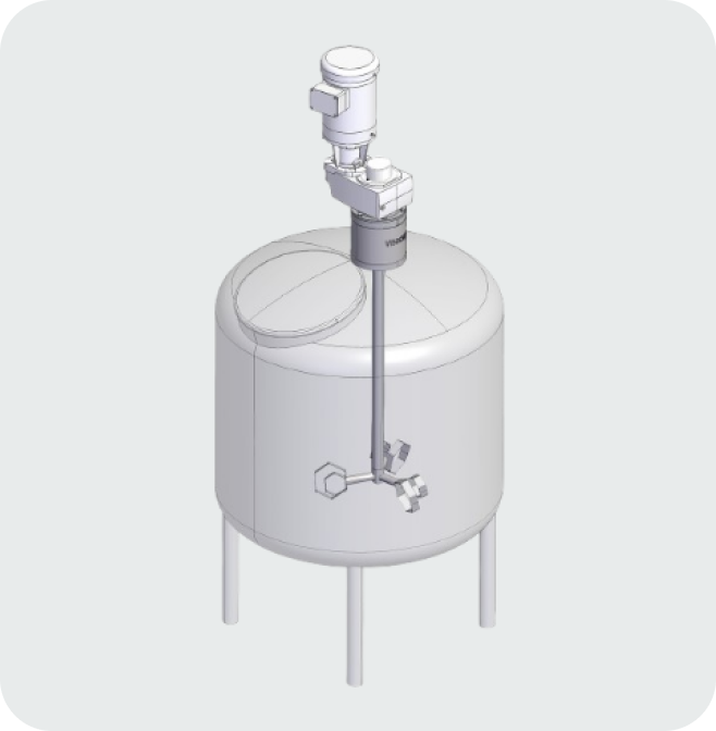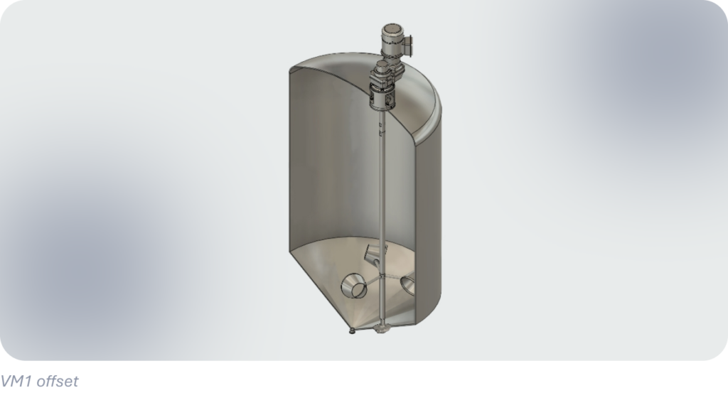 The VM1 top-mount configuration installs at the tank top and is suitable for a wide range of tank sizes and process conditions.