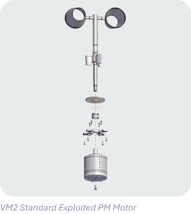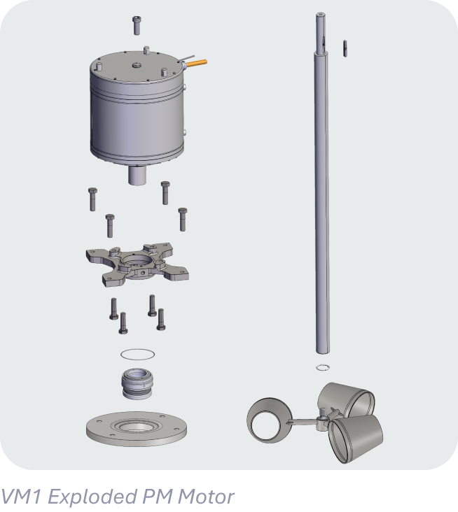 Current standard VM2 configuration using a permanent magnet motor for improved efficiency and reduced maintenance.