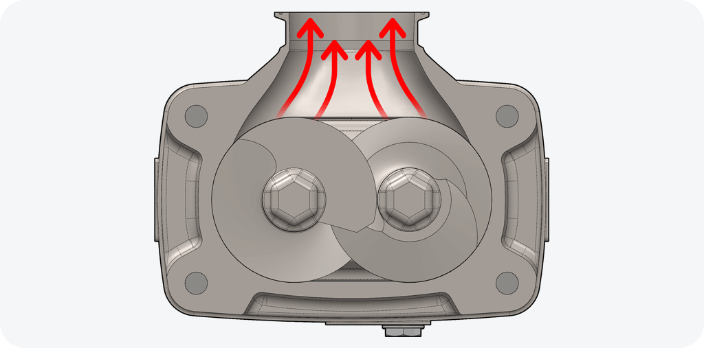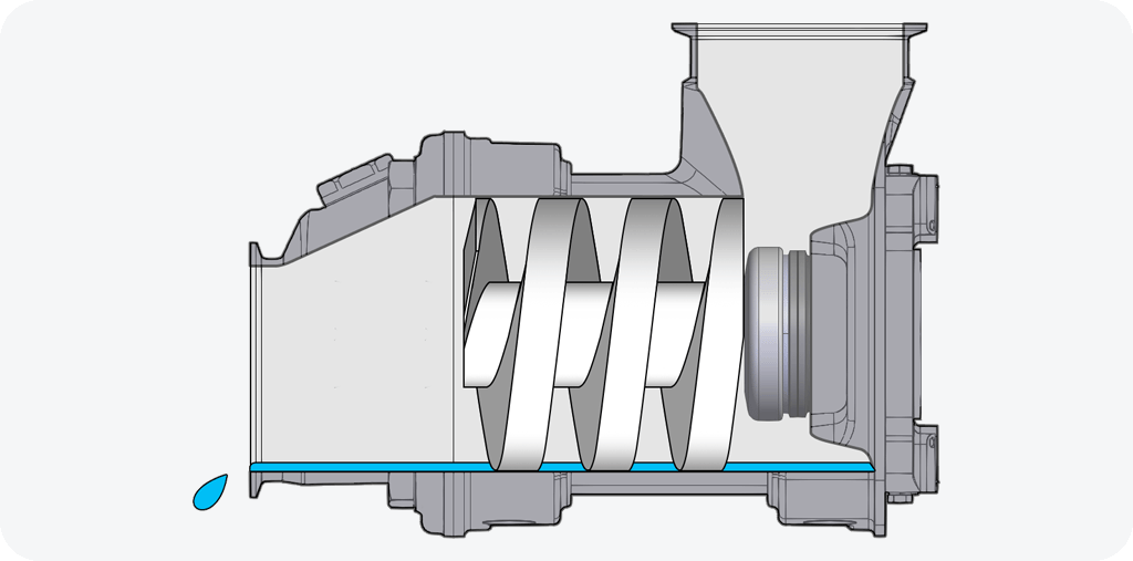 The ViscoTwin G10 design allows for 100% drainability from the Pump Housing.