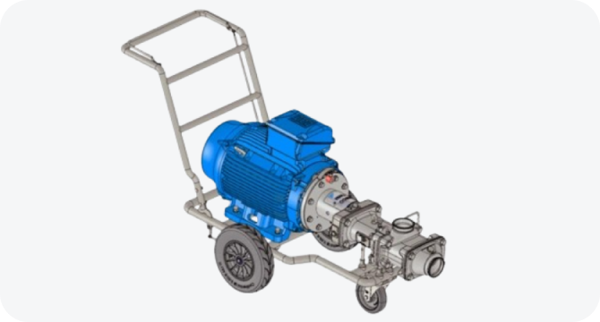 The ViscoTwin G10 pump is available by itself, or mounted to a custom developed Frame to meet your needs. Whether you need to fit into tight spaces (Frame 6) or gain total mobility (Frame 5), PROCESSTEC offers a solution. The basic design of all pump frames is the lantern, precisely connecting the motor with the pump head. All ViscoTwin G10 Pumps are block mount.