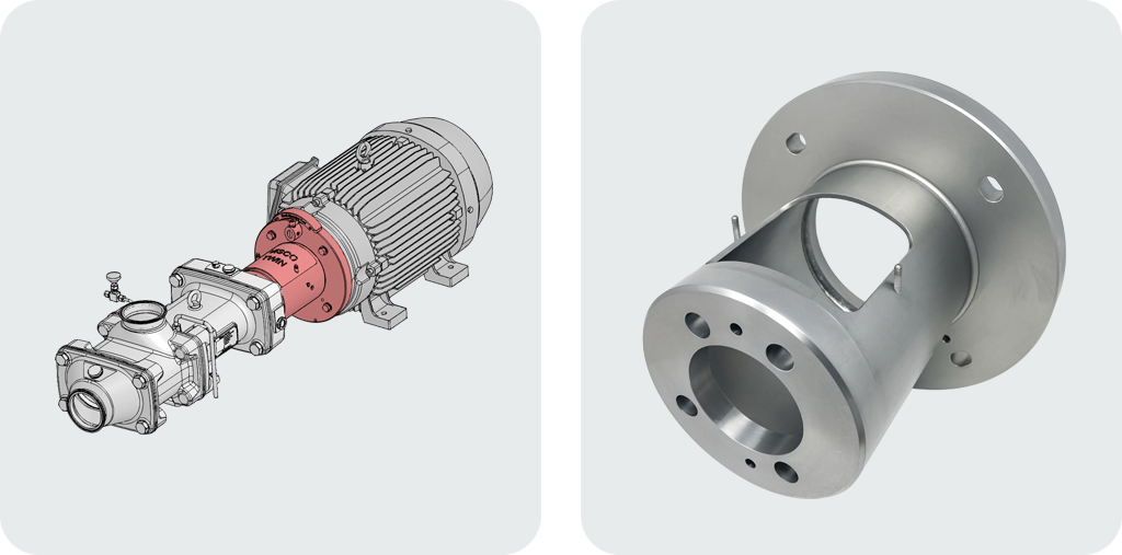 Used for close-coupled installation of the pump to a tank or auger in case the product is too viscous to flow through a valve and pipe into the pump.