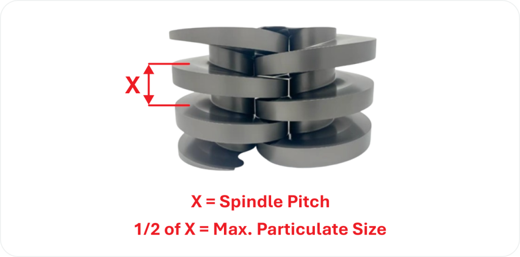 For product with specific particulate sizes, the spindle pitch will determine the minimum pump size. For example, if the particulate requires a cross section of 1″, then the pump would need to be a Model 104.53 or Model 130.65.